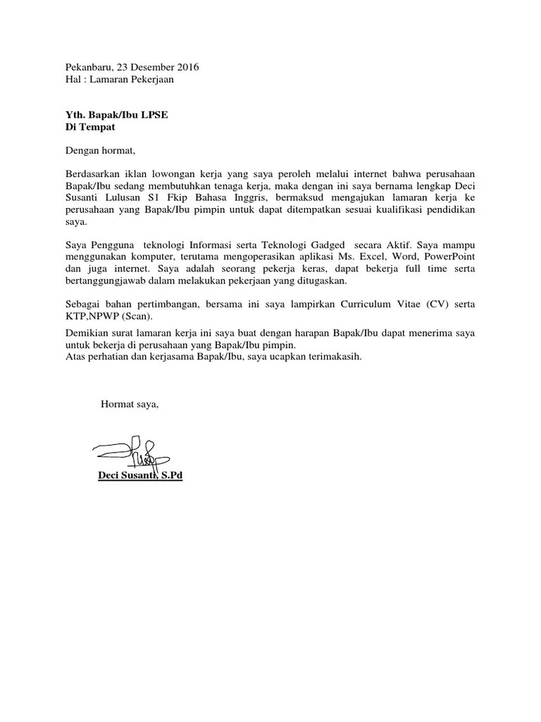 Contoh Surat Lamaran Kerja Engineer Dalam Bahasa Inggris Sederet Com from static.sederet.com Contoh surat lamaran kerja berdasarkan iklan surat kabar. Berdasarkan iklan lowongan pekerjaan yang saya dapat dari surat kabar harian one news pada tanggal 02 januari 2019 menyatakan bahwa star super mall saat ini sedang membutuhkan karyawan baru untuk bekerja sebagai pramuniaga. Contoh surat lamaran pekerjaan bahasa inggris berdasarkan iklan tersebut adalah Tanpa kita sadari, semakin sini semakin banyak perusahaan asing yang berdiri di indonesia. Berdasarkan informasi yang saya peroleh dari iklan lowongan pekerjaan di koran serambi indonesia tertanggal 04 mei 2018 terkait lowongan. Surat lamaran pekerjaan adalah surat yang diajukan oleh seorang pelamar kerja ke pihak instansi atau perusahaan tujuannya bekerja. Kumpulan contoh surat lamaran kerja yang baik dan benar sebagai referensi untuk melamar pekerjaan di berbagai macam perusahaan lengkap. Kami sertakan juga link download nya dalam format ms.